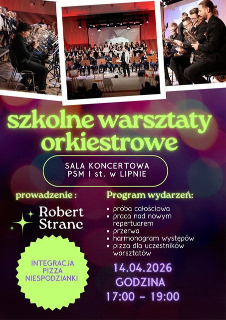 Serdecznie zapraszamy uczniów naszej szkoły grających na instrumentach dętych na Warsztaty Orkiestrowe